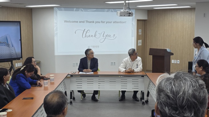 안녕하세요. 외과전문 종합병원 기쁨병원입니다.  기쁨병원의 강리페어 탈장 수술법에 대한 국제적 관심이 이어지고 있습니다. 지난 11월 5일, 몽골에서 온 의료진이 강윤식 병원장을 직접 만나  강리페어 수술법을 배우고 한국의 의료 시스템을 경험하기 위해 병원을 방문했습니다.    실전 중심의 의료 기술 전수 이날 강윤식 병원장은 강리페어 수술법의 개발 배경부터 수술 원리, 환자별 맞춤 적용법, 수술 후 관리 노하우까지 임상 경험을 바탕으로 한 심도 깊은 강의를 진행했습니다. 몽골 의료진은 특히 "재발률이 낮으면서도 회복이 빠른 비결이 무엇인가"에 대해  집중적으로 질문하며 적극적인 학습 의지를 보였습니다.