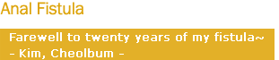 Twenty years has passed before I know while I postponed the surgery for fear of surgery and some other reasons though I had fistula for the same period of time. In the meantime I had discomfort but endured it. Since some time ago I had constipation with a few days of suffering and then I had anal fissure with great pain when I made a vowel movement. If I had let it go as it was, it would have been much worse. So I made an appointment at GIBBEUM Hospital which I have known from internet and have in mind in case. I decided to go through conscious sedation gastric and colorectal endoscopies, once I came to the hospital. At the day of appointment I received basic tests.