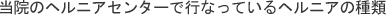 鼠径部ヘルニアと大腿ヘルニア、臍帯ヘルニア、腹壁ヘルニアの手術を行なっております。