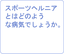 • スポーツヘルニアとは鼠径部に痛みを起す病気であります。鼠径部とは左右の大腿部の付け根にある溝の内側にある下腹部の中央にある三角形状の部分を言い、解剖学的には恥骨の左右の外側・股関節の前方部にあたります。