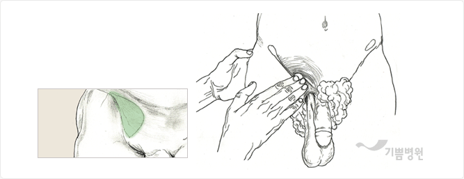 鼠径部の直径5cmの範囲で局所麻酔薬を注射し、すぐ手術に入ります。